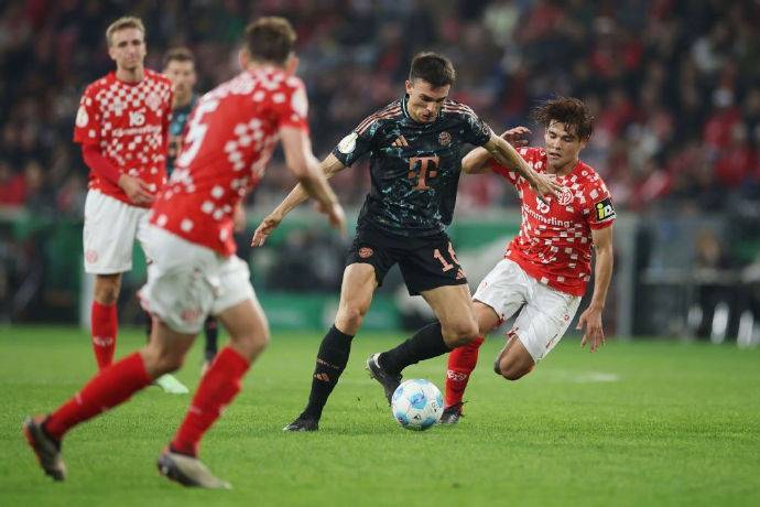 随后的比赛中,拜仁持续压制对手,但屡次与进球失之交臂:第17分钟,基米希挑传禁区内左侧,格纳布里头球摆渡,凯恩头球攻门未顶到,身后的卡尔凌空射门姿势别扭直接打飞;第20分钟,格纳布里突破至禁区内左侧,左脚抽射远角稍稍偏出;第24分钟,格纳布里禁区左侧内切后小角度兜射远角,皮球被葡萄牙体育门将神勇扑出底线分钟,莱默尔禁区右侧扣球后分球,卡尔做球,凯恩右脚射门球速不快被门将鱼跃扑住;第37分钟,凯恩禁区前沿连续扣球晃动后左脚射门,皮球重重击中立柱弹出——这是拜仁上半场最接近破门的机会,诺伊尔甚至已开始庆祝,却因皮球弹柱而出徒留遗憾。